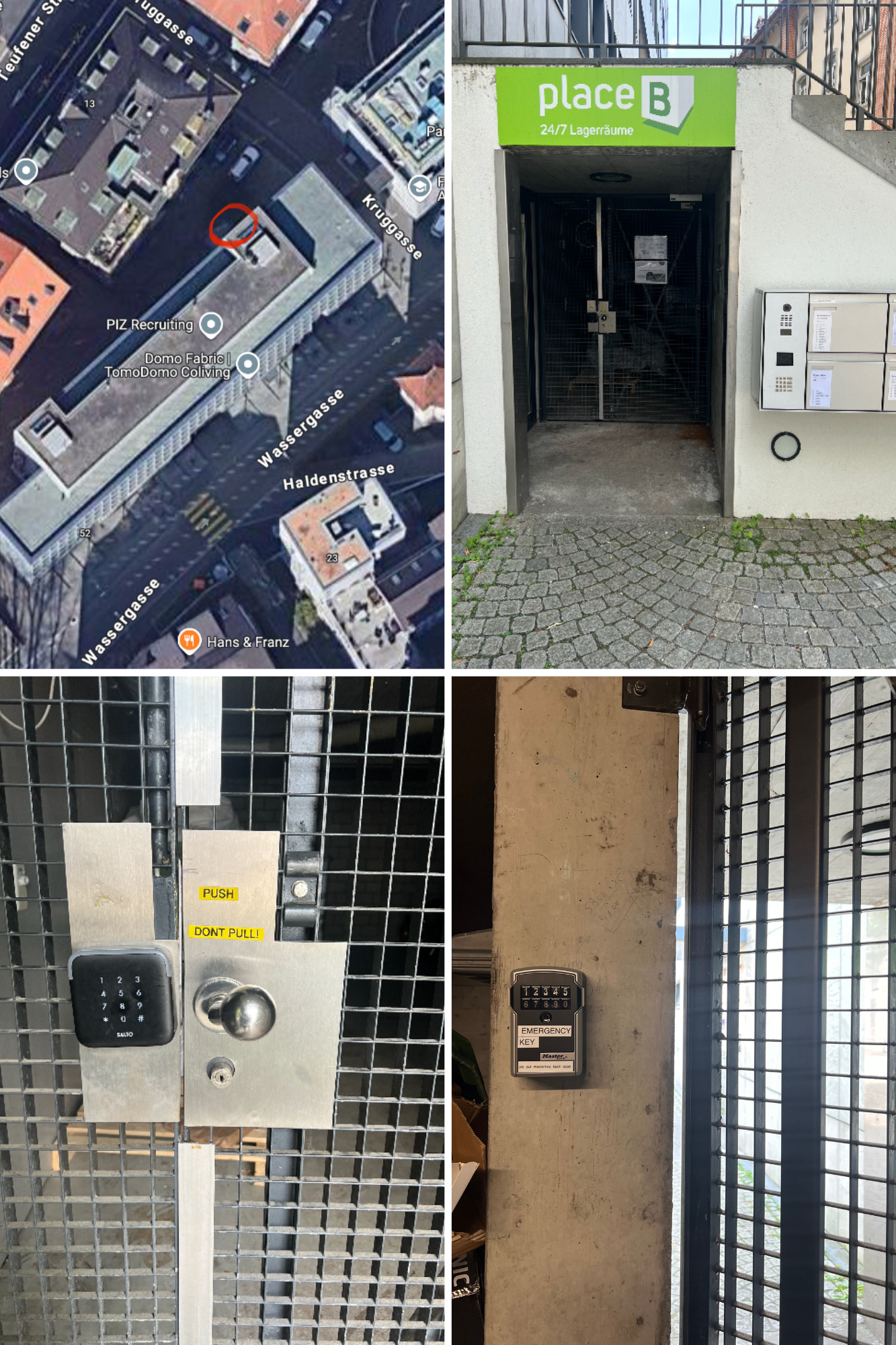- Es gibt einen Notfallschlüssel in einer Schlüsselbox, die sich im Fahrradkeller/Recyclingbereich ausserhalb des Gebäudes befindet